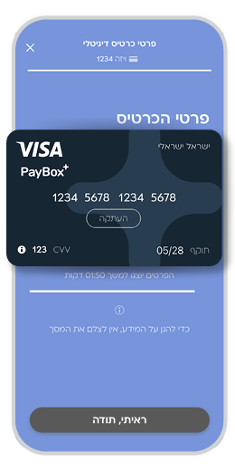 הנפקת הכרטיס באמצעות אפליקציית PayBox ובכפוף לתנאי השימוש.